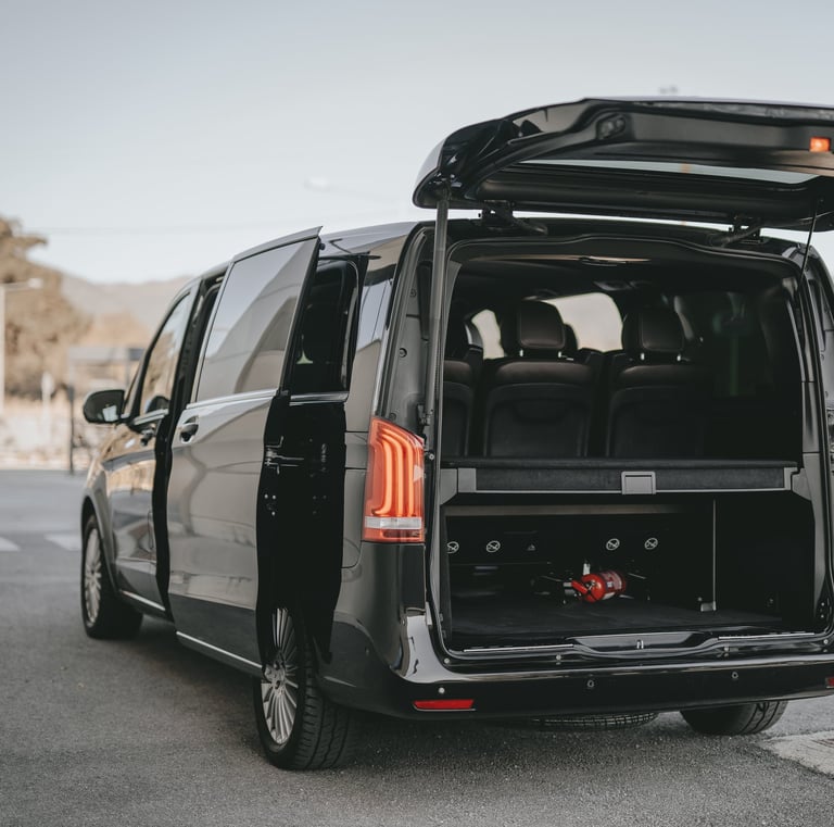 Rent a Mercedes V Class van for special occasions, weddings, and events in Greece.